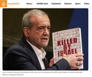 الجزیره، همچنین با اشاره به سخنان رئیس جمهور ایران درباره جنایات رژیم صهیونیستی در جریان جنگ تحمیلی ۱۲ روزه، جنگ در غزه و حمله به رهبران حماس در دوحه قطر نوشت: پزشکیان، طرح «اسرائیل بزرگ» را محکم کرد و آن را توهمی و مسخره عنوان کرد.